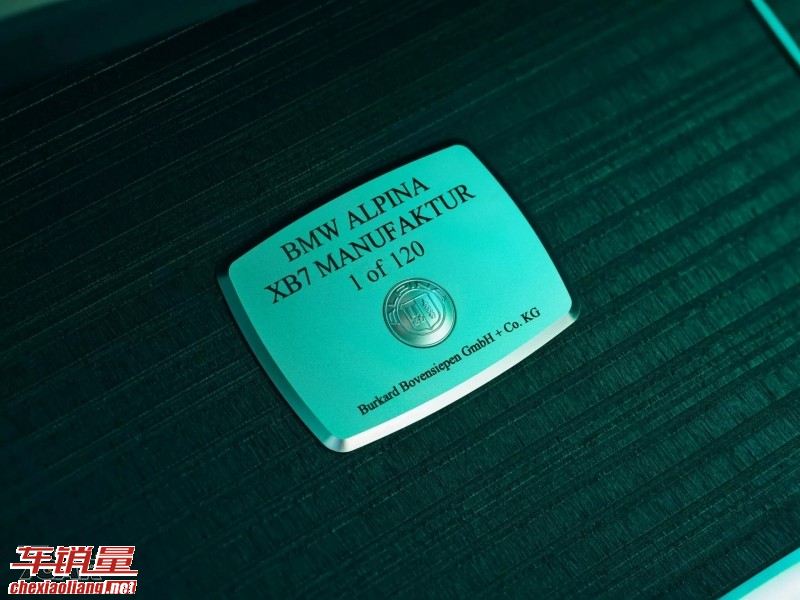 所有 XB7 Manufaktur 车型皆采用 Tartufo Full Merino 真皮座椅,并搭配 宾利 Walnut Nature Black 木质饰板。座椅头枕绣有 宾利 标志,黑色地毯上同样印有品牌徽章,车内还设有专属金属铭牌标示「1 of 120」,突显限量身分。